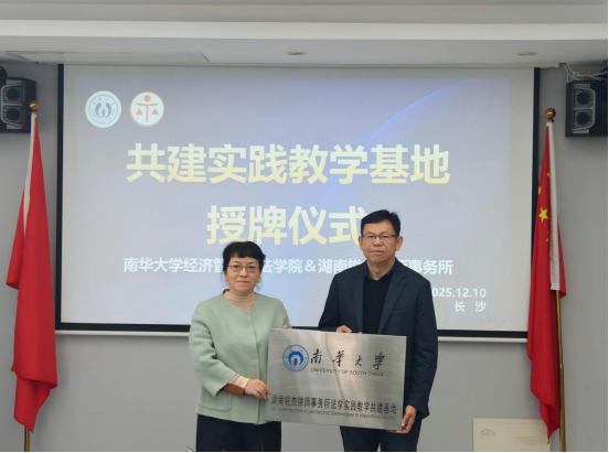 随后,在与会人员的共同见证下,李玉琼院长与律所袁亚云副主任签署了合作协议,并为“南华大学·湖南锐杰律师事务所法学实践教学共建基地”授牌。