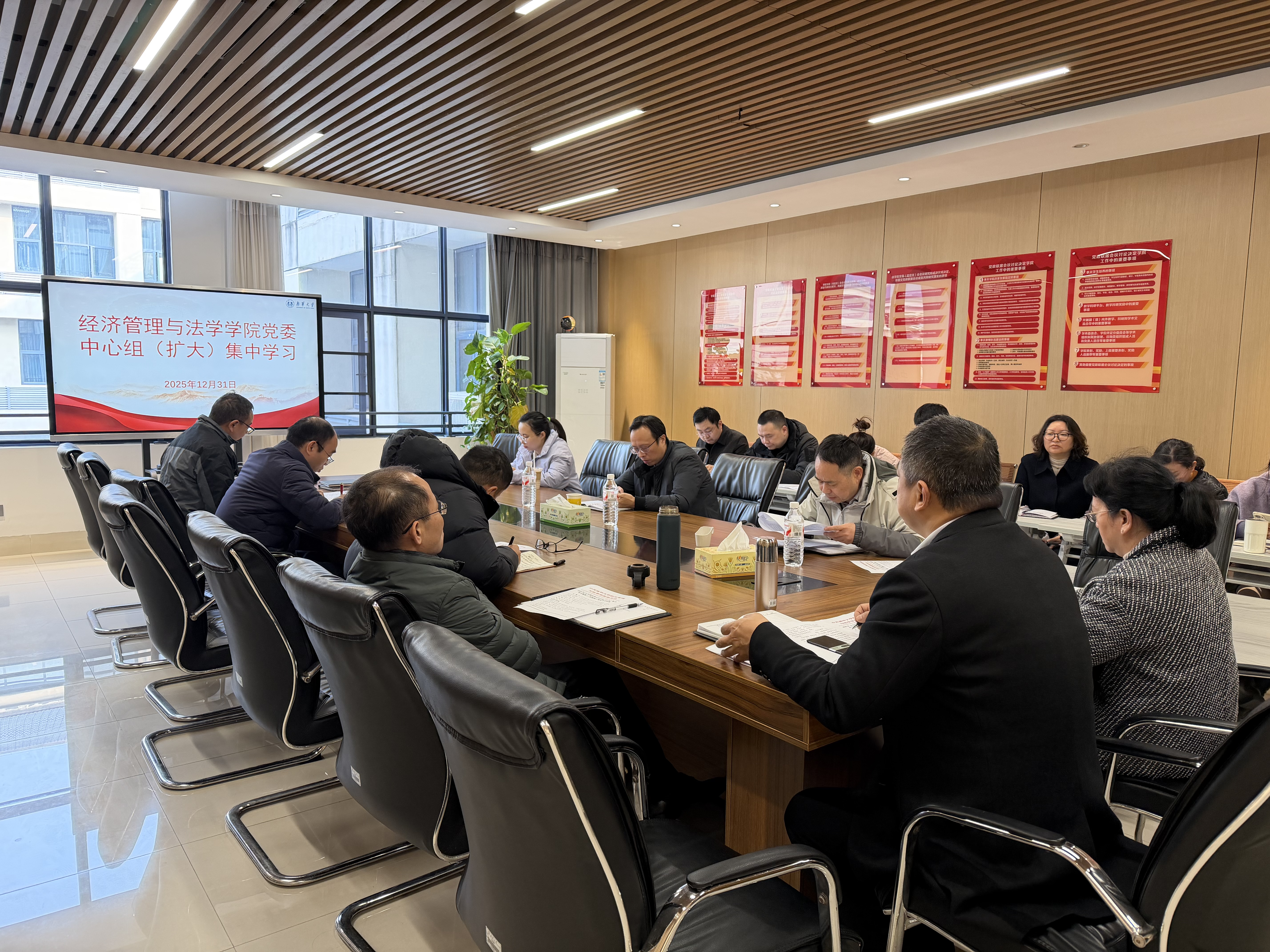 12月31日下午,经济管理与法学学院党委在崇义楼308会议室举行12月理论学习中心组(扩大)集中学习暨第11次教职工理论学习,学习主题为“深入学习贯彻习近平总书记重要讲话精神和中央经济工作会议精神,认真贯彻落实省委十二届九次全会精神,深刻认识教育、科技、人才对经济社会发展的战略先导地位和根本支撑作用,引领广大师生把思想和行动统一到党中央决策部署及省委工作要求上来,不断推动学校高质量发展。”