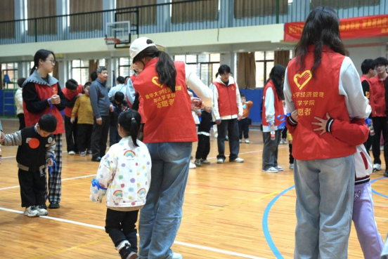 近日,南华大学经济管理与法学学院志愿者在红湘校区南操篮球室内开展“星心相伴,与你同行”志愿服务活动,来自衡阳顾连儿童康复医院的特殊儿童在志愿者的耐心陪伴下参与互动游戏,用青春力量传递社会善意与温暖。