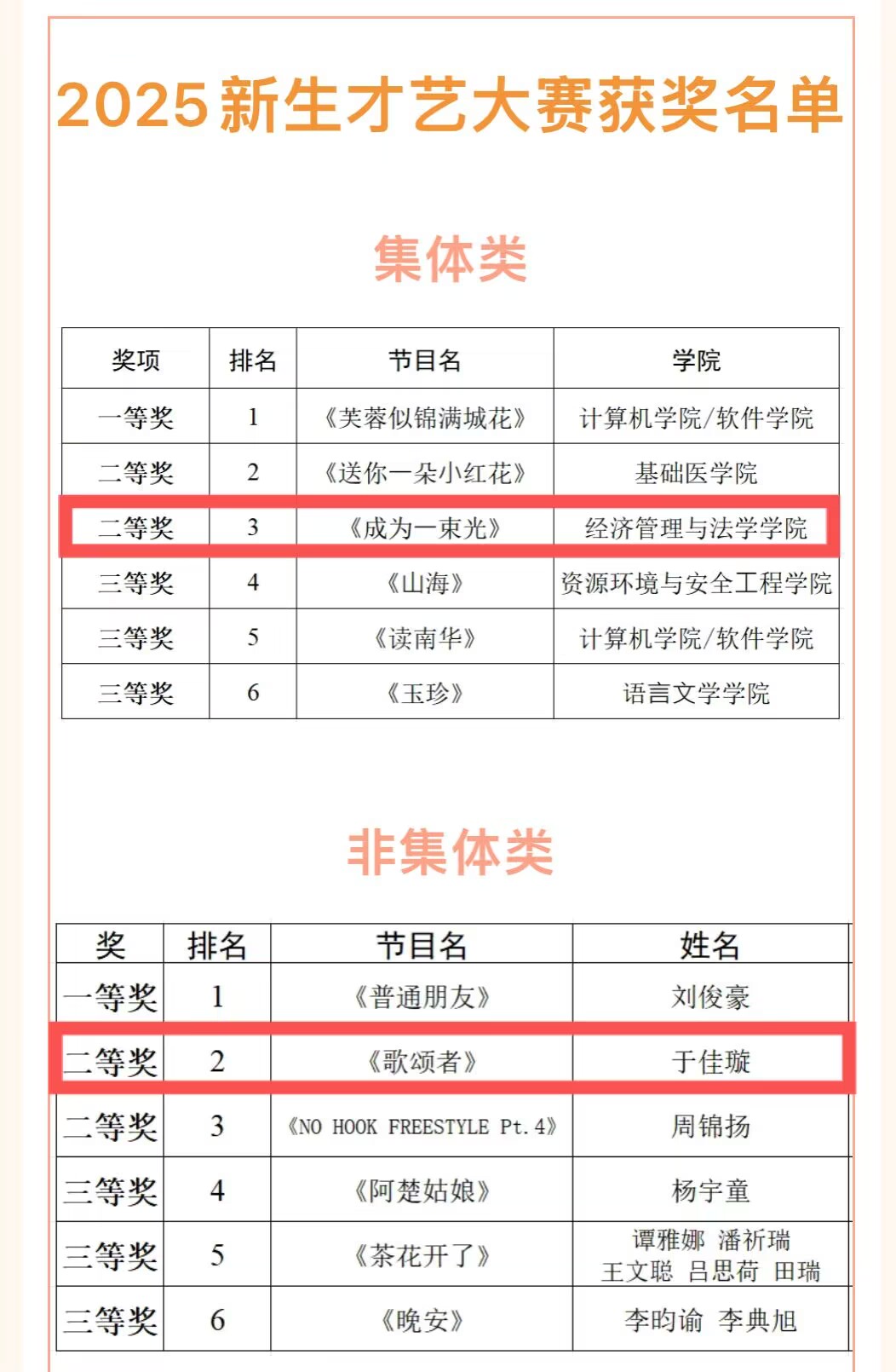 此次获奖,既是对学子才艺的肯定,更是对我院美育育人成果的生动展现。未来,我院将继续以丰富的文体活动为载体,鼓励更多学子在多元舞台上展现自我、追逐热爱,以青春之名,赴时代之约,用才华与热爱书写属于经管法学子的精彩篇章!