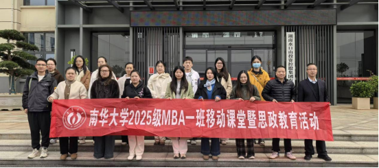 为深入践行新时代管理人才“知行合一”的培养理念,创新教学模式,将管理理论与产业实践深度融合,同时持续强化思想政治引领,2025年12月7日,南华大学2025级MBA一班联合二班学员,在学院领导及教师的带领下,赴常宁市经开区开展以“透视现代纺织服装产业链的管理革新与价值创造”为主题的移动课堂,并前往衡阳党史馆接受革命传统教育。