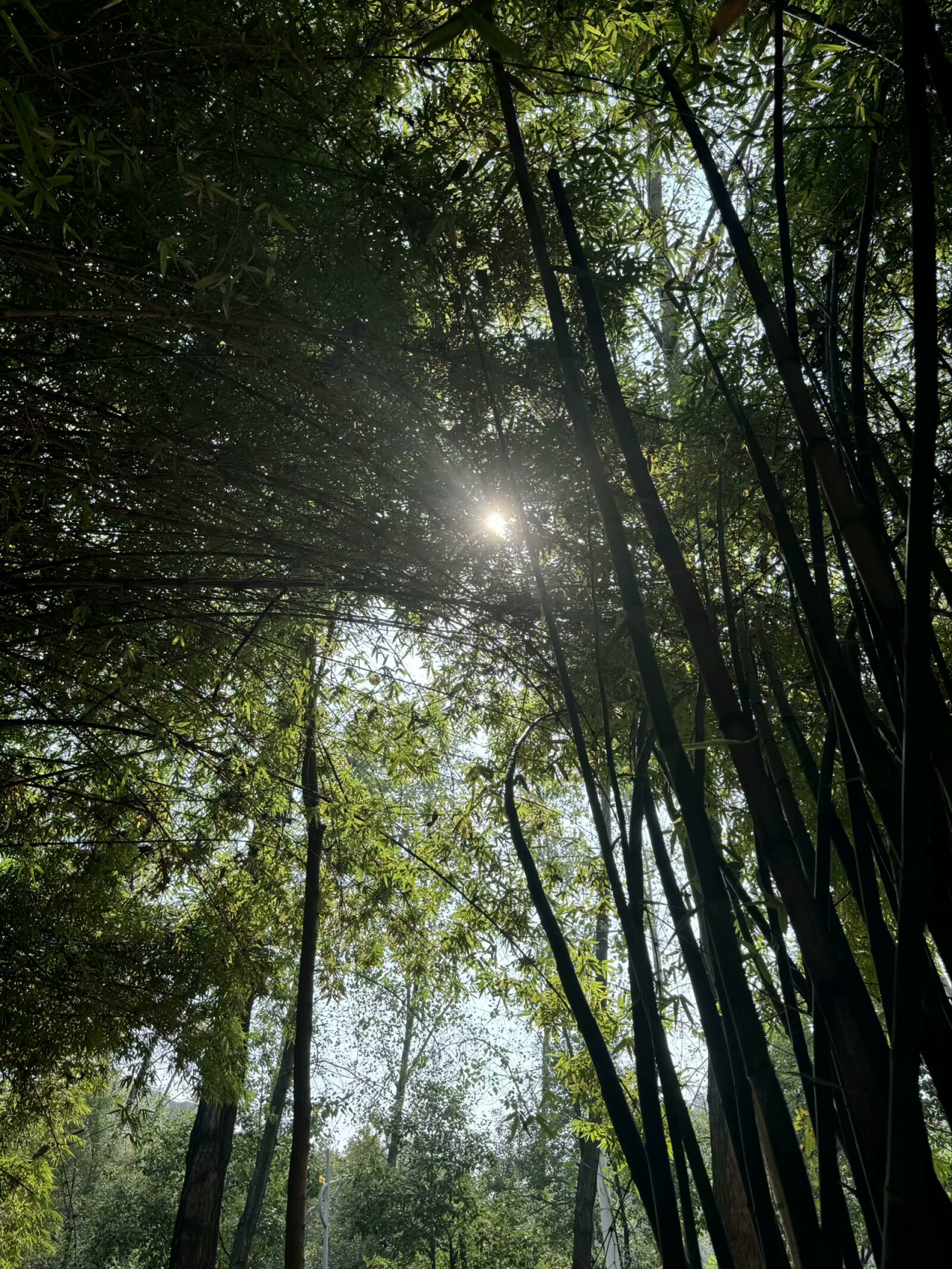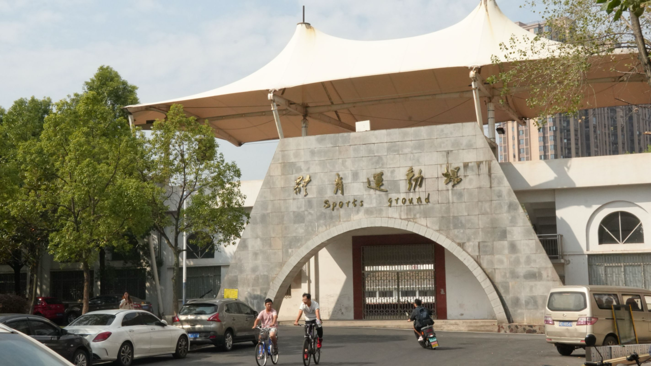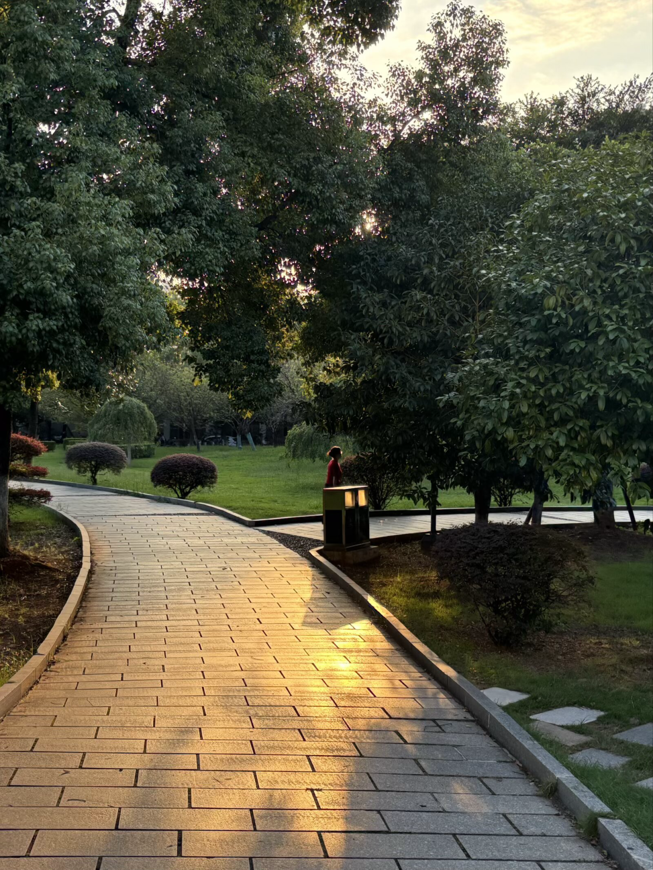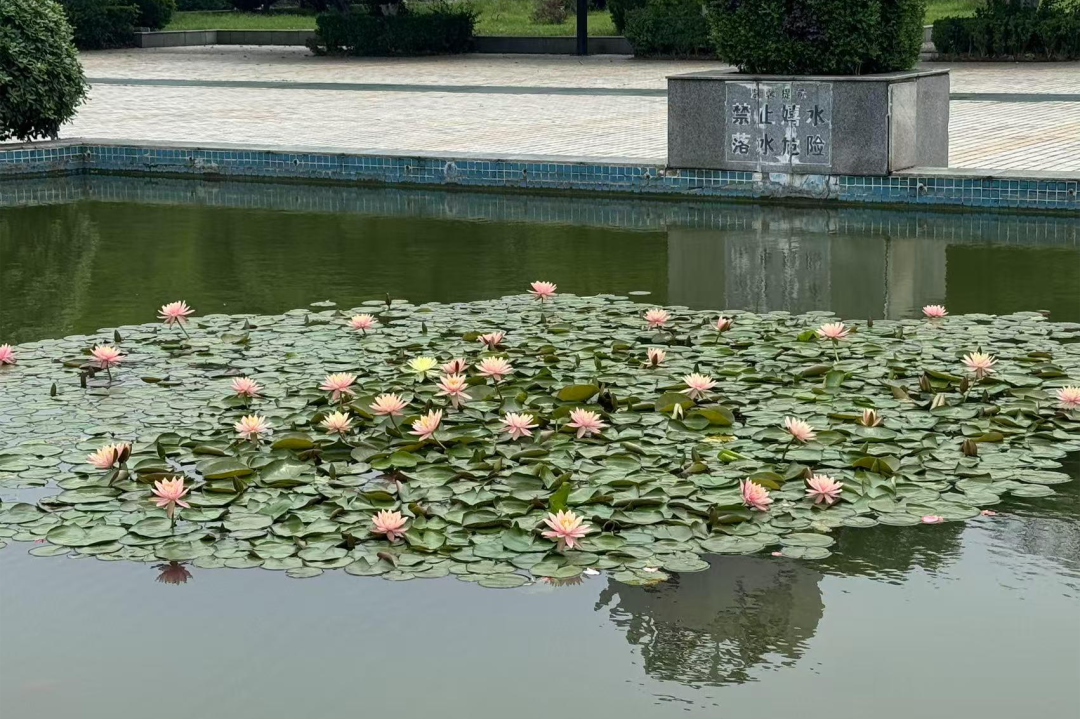 粉白花瓣倒映在学院楼玻璃幕墙上;